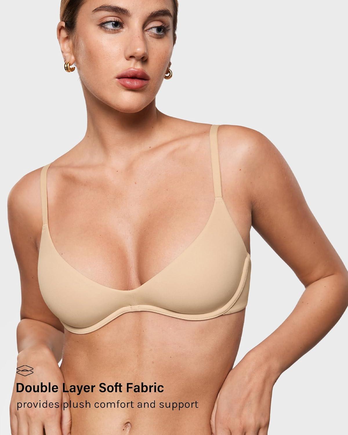 imageINLYRIC Womens Inbarely Plus Plunge Bra  Unlined Underwire Sexy Demi Balconette BrasLight Oatmeal