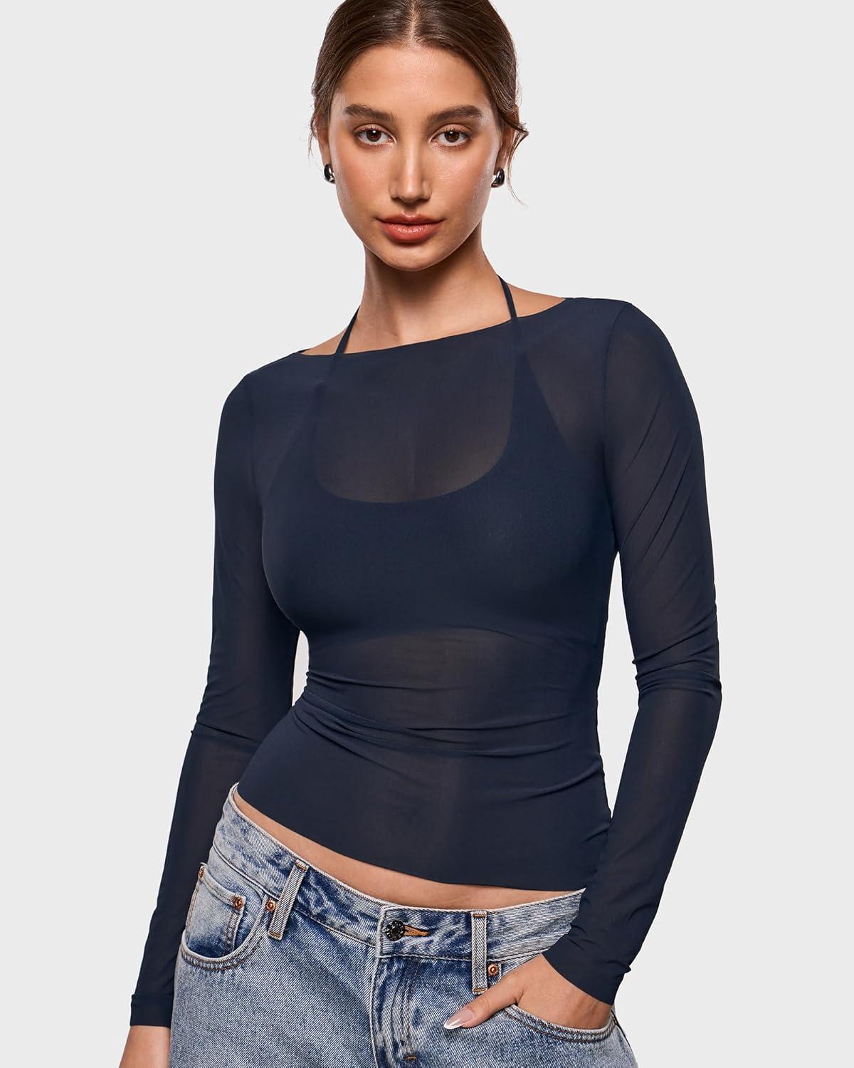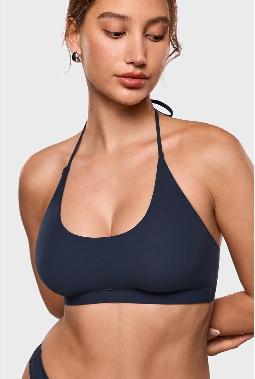 INLYRIC Women's Inbarely Soft Halter Bralette Open Back Backless Tie-Back No Padding Unlined Scoop No Underwire Bra(Deep Ocean Blue)