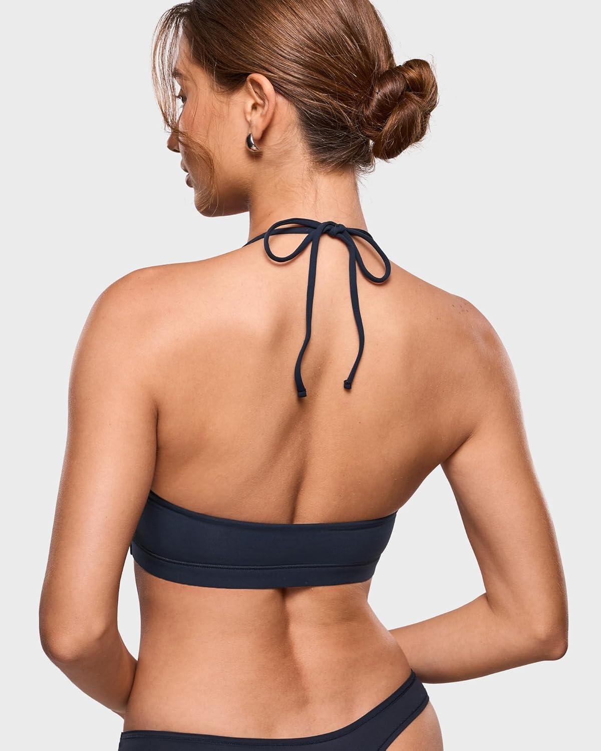 INLYRIC Women’s Inbarely Soft Halter Bralette Open Back Backless Tie-Back No Padding Unlined Scoop No Underwire Bra(Black)