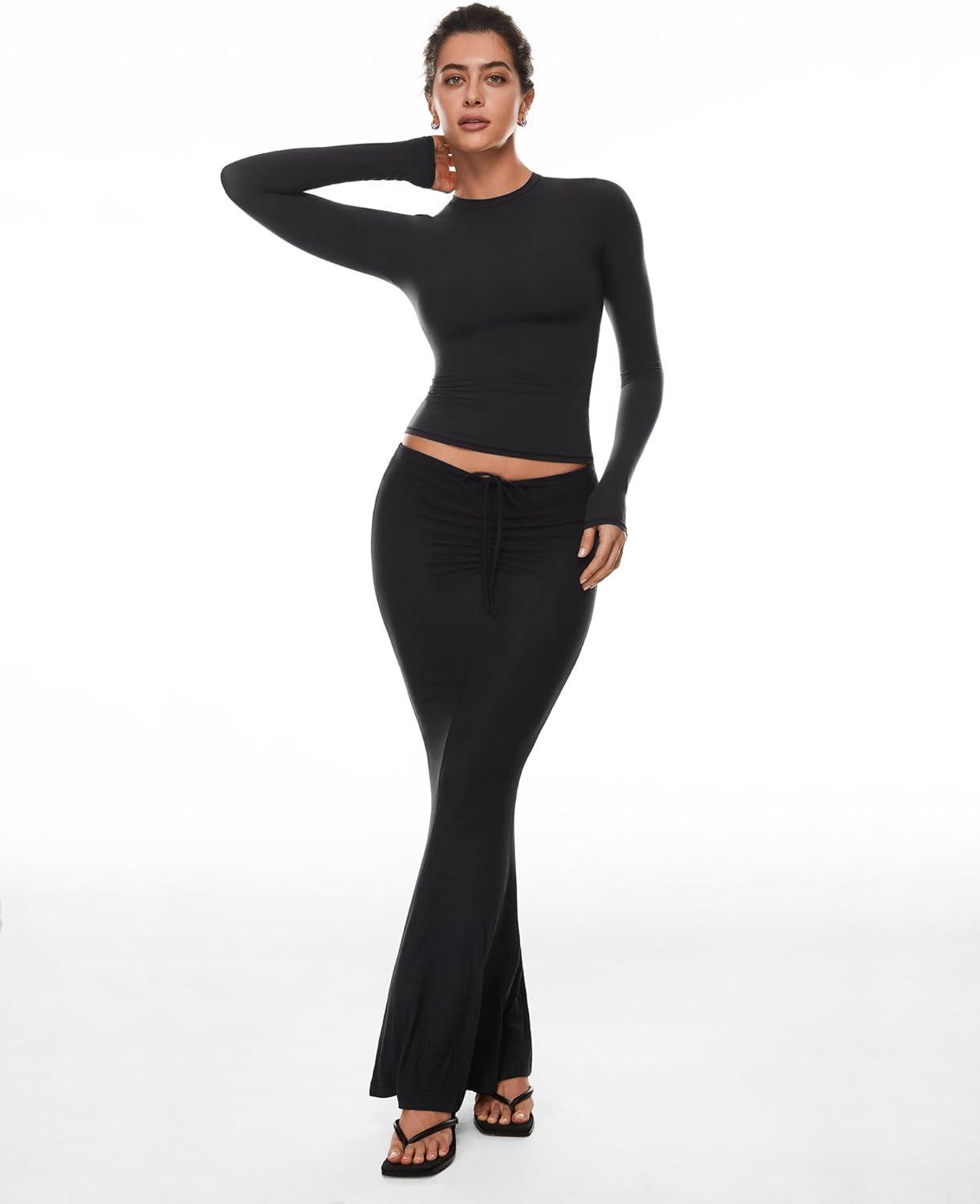 INLYRIC Women's Inbarely Soft Long Sleeve T-Shirts Crew Neck Basic Tees Slim Fitted Going Out Tops Trendy Fall Outfits(Black)