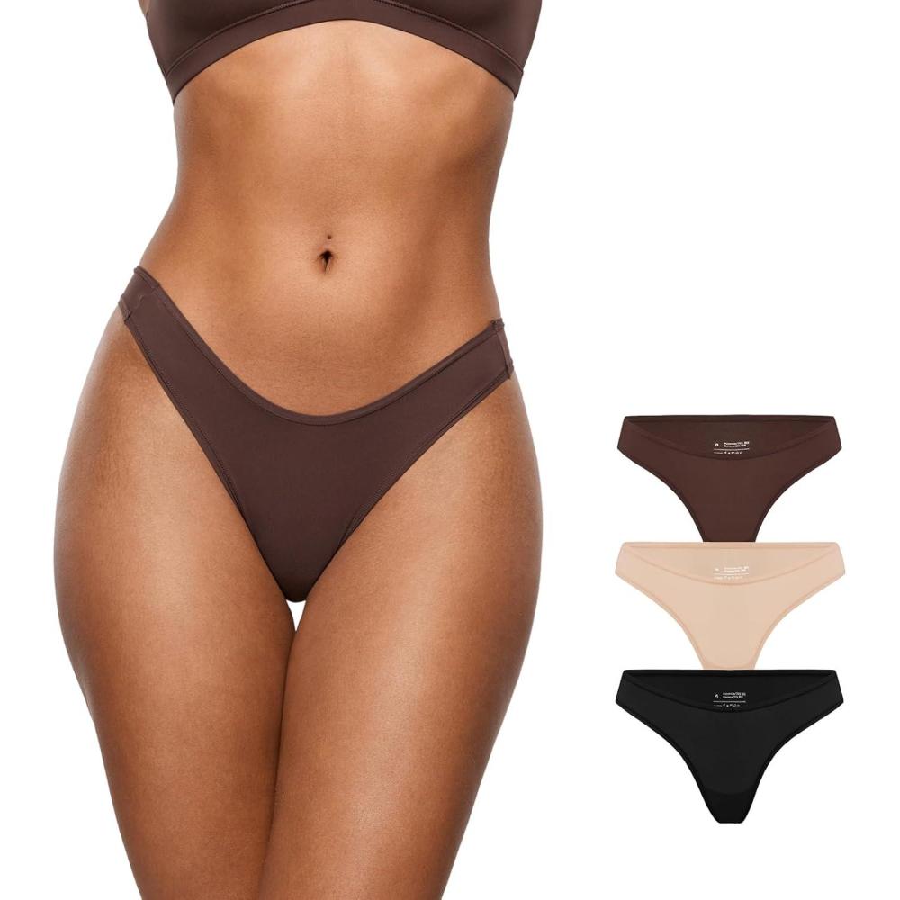INLYRIC Women's Inbarely Soft Thong - No Show Sexy Panties Breathable V-waisted Ladies Underwear 3 Pack(Basic 06 (3pack))