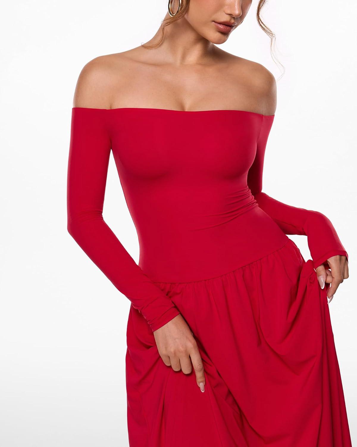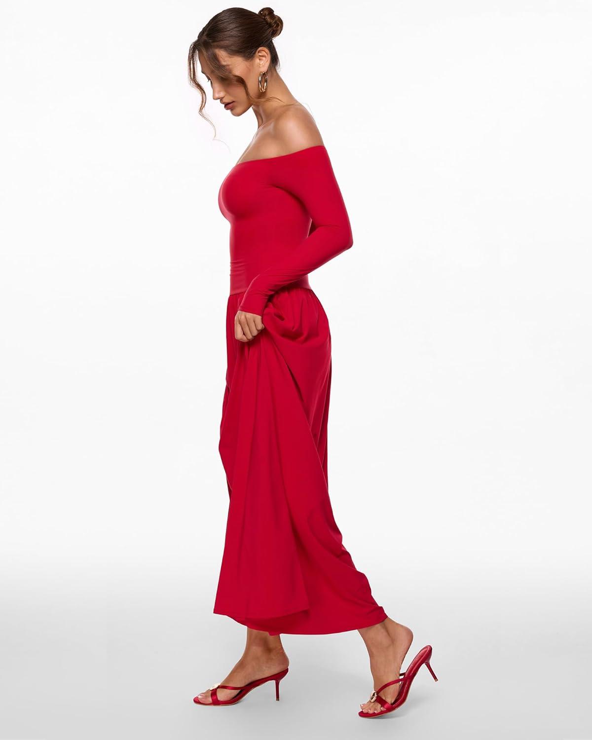 Be the first to review “INLYRIC Women’s Off The Shoulder Long Sleeve Maxi Dresses Elegant Formal Wedding Guest Cocktail Long Dresses(Lipstick Red)” Cancel reply